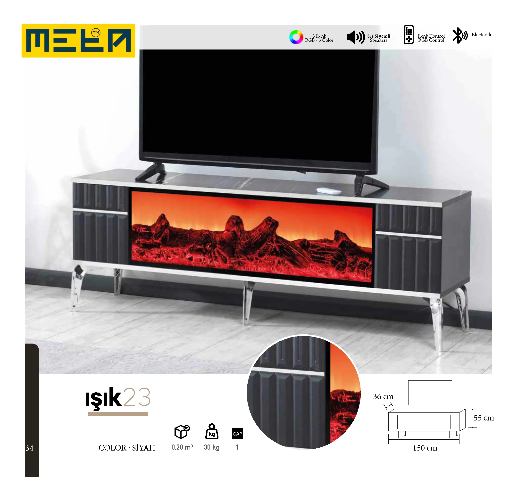 KAYSERI TV STAND WITH FIREPLACE